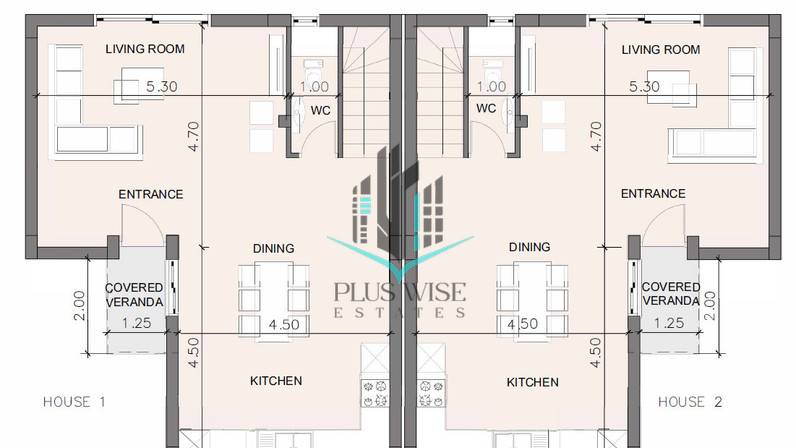 Set on generous plots ranging from 231 to 240 m², the villas feature a covered area of 128 m², thoughtfully arranged over two levels.