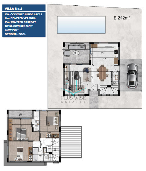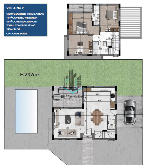 Each Villa in the complex is designed with maximum comfort in mind. The project includes an open-plan living room and kitchen and a covered veranda. Parking and a private storage room are also available.