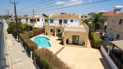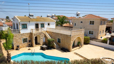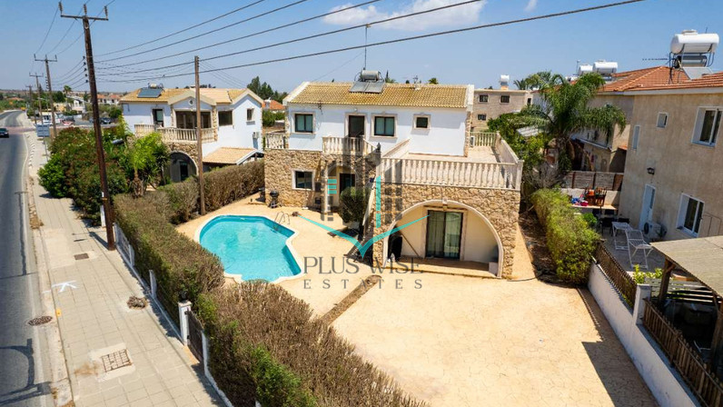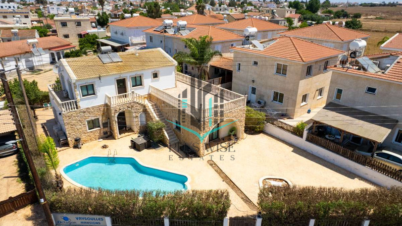 This pristine four bedroom detached villa in the charming village of Vrysoulles offers a private swimming pool and a beautifully landscaped garden. Plot size 660 sq. m. Covered Areas from 240 sq.m.
