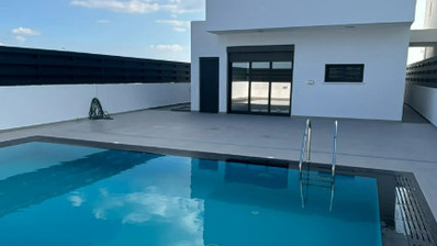 A private swimming pool adds a touch of luxury, perfect for relaxing or entertaining during sunny days.